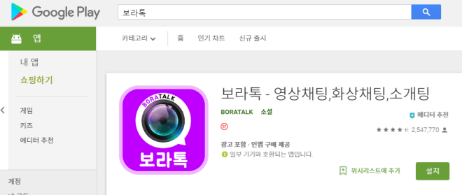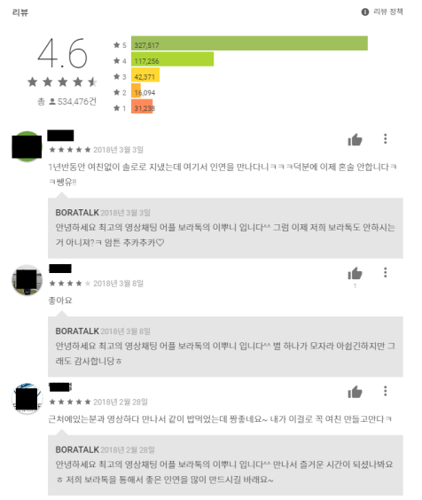 화상채팅어플 평점4.6 리뷰 5만건! 보라톡